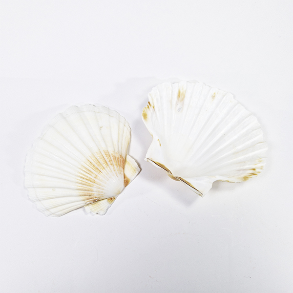 • duas conchas do mar brancas e bege em fundo branco
